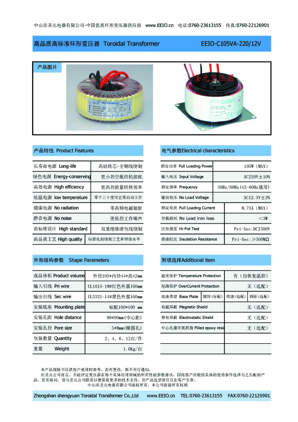 此變壓器采用進(jìn)口高磁通量低損耗硅鋼片加雙層絕緣高強(qiáng)度漆包線繞制而成,具有優(yōu)良的電氣特性。
