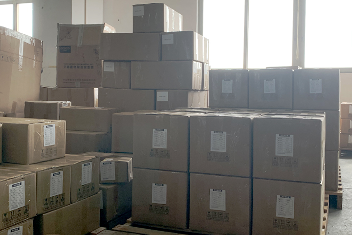 圣元電器倉庫內(nèi)整齊存放著準(zhǔn)備發(fā)出的環(huán)形變壓器。